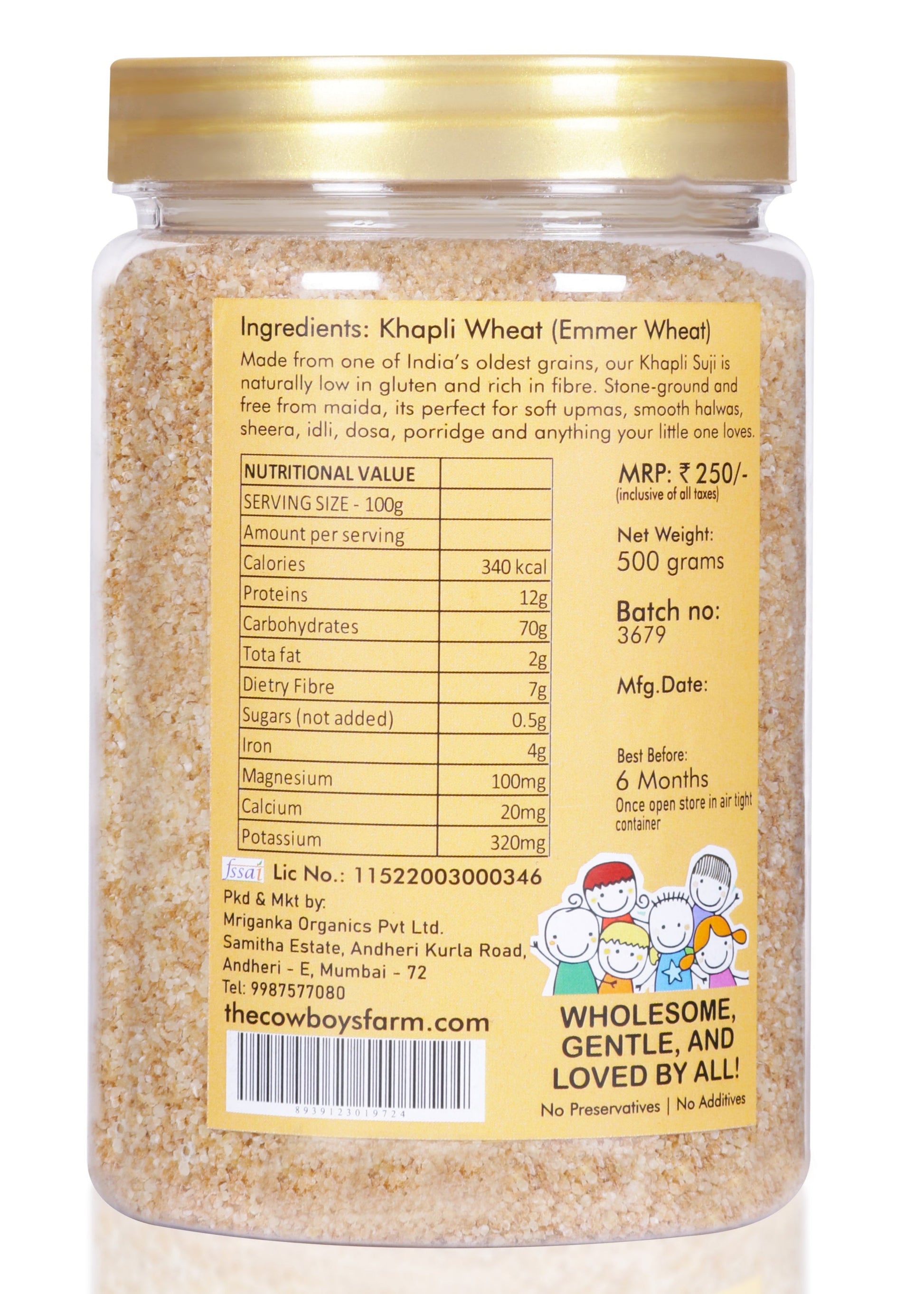 Khapli Suji (made from ancient Khapli or Emmer wheat) is your perfect kitchen swap – rich in fiber, protein, and naturally lower in gluten. Whether you're making upma, sheera, halwa, or cheela, now you can enjoy the same taste with extra nourishment in every bite.