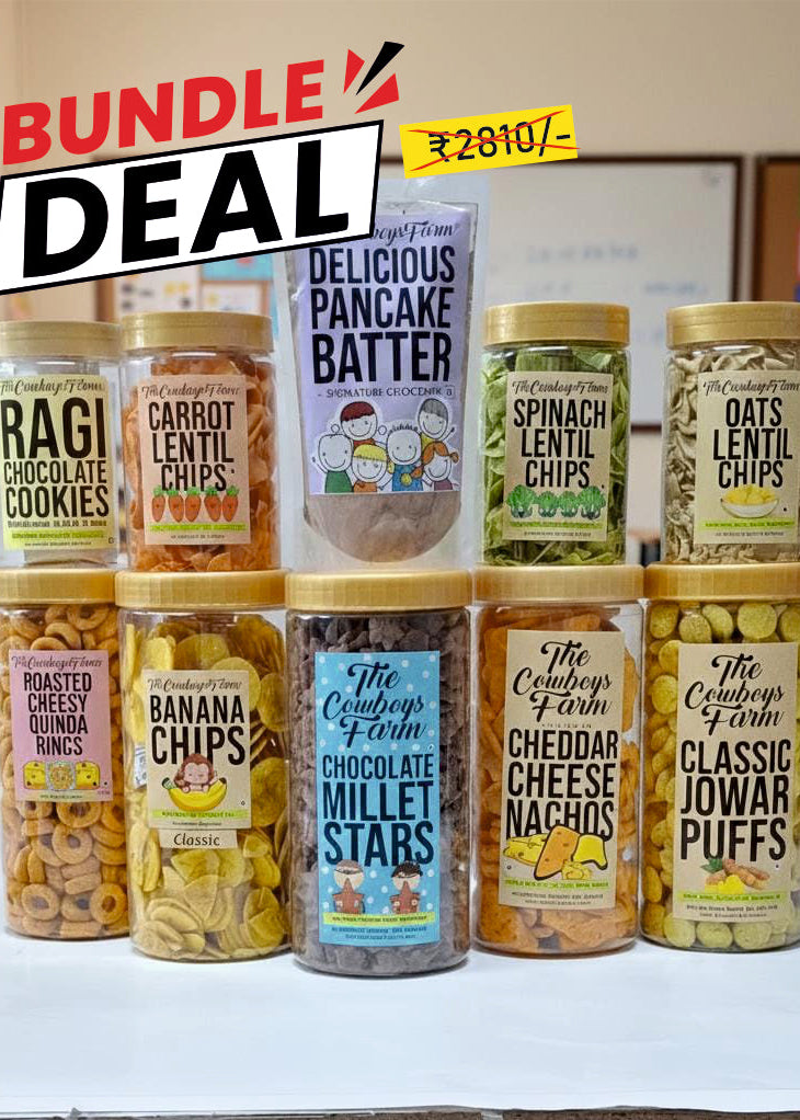 Meet your ultimate pantry partner for a stress-free school week. The Junior Joy Bundle is a masterfully curated collection of 10 handcrafted snacks, specifically designed for kids who love a big crunch without the spicy heat. From protein-packed lentil chips and cheesy ancient grain puffs to mindful chocolate treats, every item is non-spicy, nutrient-dense, and school-approved. Housed in our signature lightweight, reusable jars, this bundle takes the guesswork out of packing lunchboxes, ensuring your little ones stay fueled, focused, and smiling from the first bell to the final bus ride.